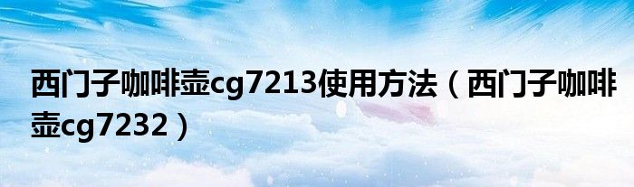 大家好,雨雨来为大家解答以上问题,西门子咖啡壶cg7213使用方法,西门子咖啡壶cg7232很多人还不知道,现在让我们一起来看看吧!