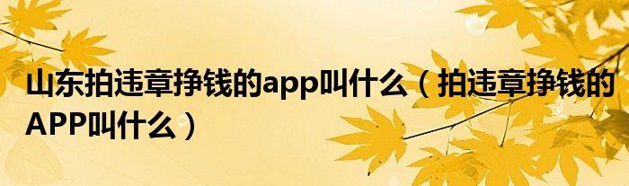 大家好,雨雨来为大家解答以上问题,山东拍违章挣钱的app叫什么,拍违章挣钱的APP叫什么很多人还不知道,现在让我们一起来看看吧!