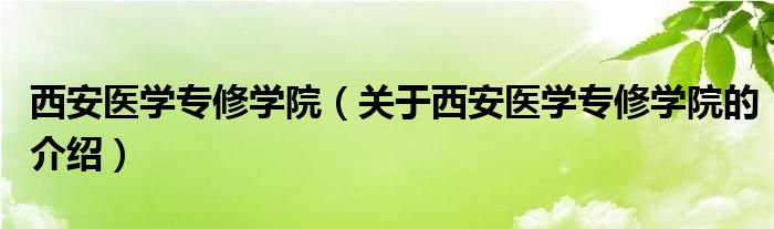 西安医学专修学院(关于西安医学专修学院的介绍)