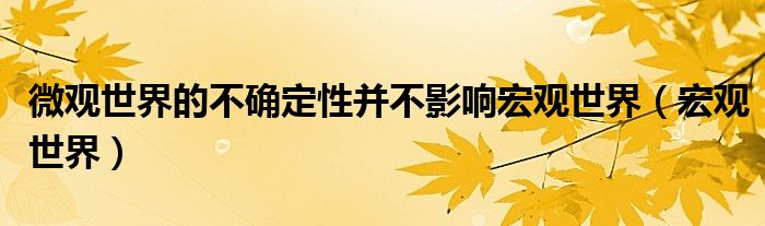 关于微观世界的不确定性并不影响宏观世界,宏观世界这个很多人还不知道,今天菲菲来为大家解答以上的问题,现在让我们一起来看看吧!