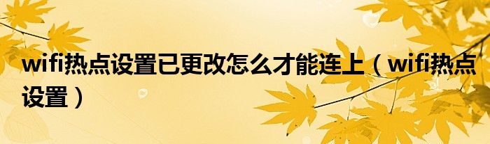 大家好,雨雨来为大家解答以上问题,wifi热点设置已更改怎么才能连上,wifi热点设置很多人还不知道,现在让我们一起来看看吧!
