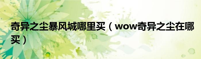 关于奇异之尘暴风城哪里买,wow奇异之尘在哪买这个很多人还不知道,今天菲菲来为大家解答以上的问题,现在让我们一起来看看吧!