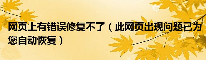 关于网页上有错误修复不了,此网页出现问题已为您自动恢复这个很多人还不知道,今天菲菲来为大家解答以上的问题,现在让我们一起来看看吧!