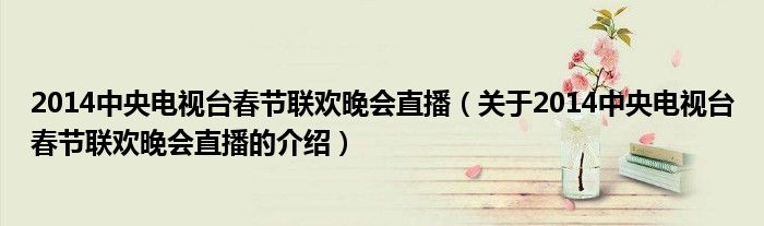 大家好,今天小乐来为大家解答以上的问题。2014中央电视台春节联欢晚会直播,关于2014中央电视台春节联欢晚会直播的介绍很多人还不知道,现在让我们一起来看看吧!