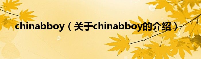 大家好,今天小乐来为大家解答以上的问题。chinabboy,关于chinabboy的介绍很多人还不知道,现在让我们一起来看看吧!