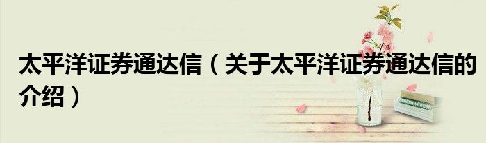太平洋证券通达信(关于太平洋证券通达信的介绍)
