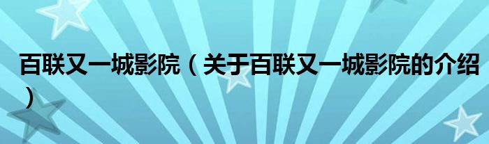 百联又一城影院(关于百联又一城影院的介绍)