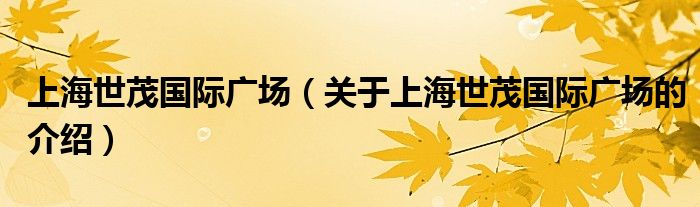 上海世茂国际广场(关于上海世茂国际广场的介绍)