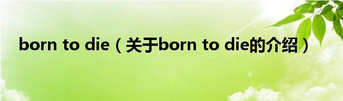 大家好,小都来为大家解答以上的问题。born to die,关于born to die的介绍很多人还不知道,现在让我们一起来看看吧!