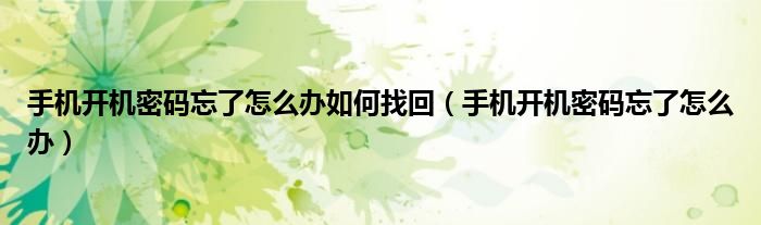 以上是关于如何忘记手机开机密码的解决方法。希望对大家有帮助!