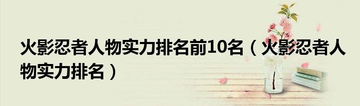 关于火影忍者人物实力排名前10名,火影忍者人物实力排名这个很多人还不知道,今天菲菲来为大家解答以上的问题,现在让我们一起来看看吧!