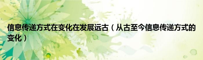 关于信息传递方式在变化在发展远古,从古至今信息传递方式的变化这个很多人还不知道,今天菲菲来为大家解答以上的问题,现在让我们一起来看看吧!