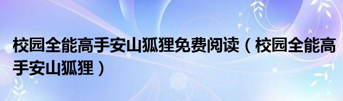 校园全能高手安山狐狸免费阅读(校园全能高手安山狐狸)
