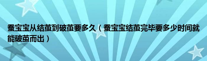 关于蚕宝宝从结茧到破茧要多久,蚕宝宝结茧完毕要多少时间就能破茧而出这个很多人还不知道,今天菲菲来为大家解答以上的问题,现在让我们一起来看看吧!