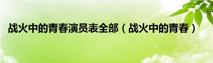 关于战火中的青春演员表全部,战火中的青春这个很多人还不知道,今天菲菲来为大家解答以上的问题,现在让我们一起来看看吧!
