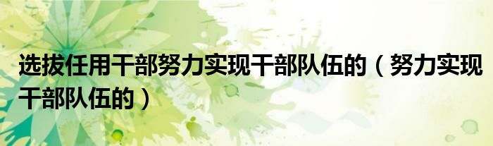 选拔任用干部努力实现干部队伍的(努力实现干部队伍的)