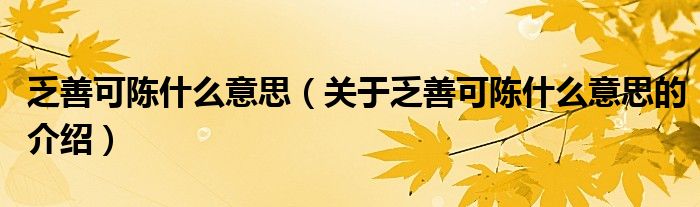 大家好,小都来为大家解答以上的问题。乏善可陈什么意思,关于乏善可陈什么意思的介绍很多人还不知道,现在让我们一起来看看吧!