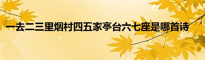 关于一去二三里烟村四五家亭台六七座是哪首诗这个很多人还不知道,今天菲菲来为大家解答以上的问题,现在让我们一起来看看吧!