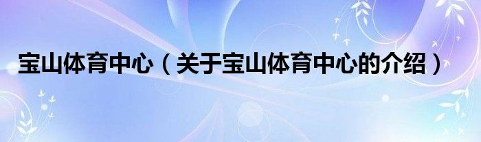 大家好,小都来为大家解答以上的问题。宝山体育中心,关于宝山体育中心的介绍很多人还不知道,现在让我们一起来看看吧!
