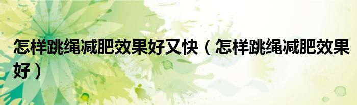 关于怎样跳绳减肥效果好又快,怎样跳绳减肥效果好这个很多人还不知道,今天菲菲来为大家解答以上的问题,现在让我们一起来看看吧!