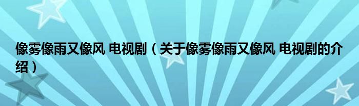 大家好,小都来为大家解答以上的问题。像雾像雨又像风 电视剧,关于像雾像雨又像风 电视剧的介绍很多人还不知道,现在让我们一起来看看吧!