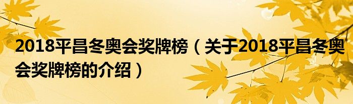 大家好,小都来为大家解答以上的问题。2018平昌冬奥会奖牌榜,关于2018平昌冬奥会奖牌榜的介绍很多人还不知道,现在让我们一起来看看吧!