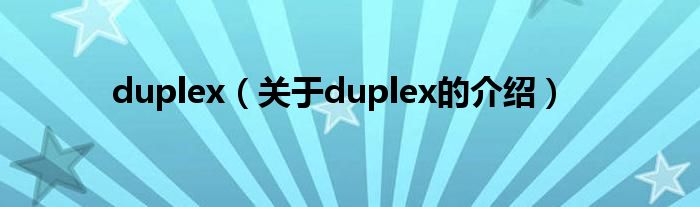 大家好,小都来为大家解答以上的问题。duplex,关于duplex的介绍很多人还不知道,现在让我们一起来看看吧!