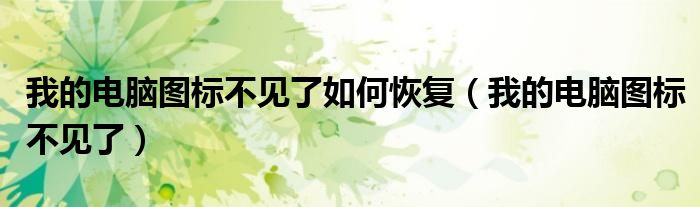 大家好,小飞来为大家解答以上问题,我的电脑图标不见了如何恢复,我的电脑图标不见了很多人还不知道,现在让我们一起来看看吧!