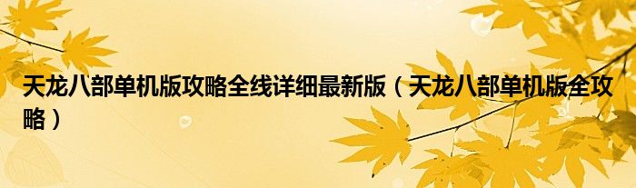 关于天龙八部单机版攻略全线详细最新版,天龙八部单机版全攻略这个很多人还不知道,今天菲菲来为大家解答以上的问题,现在让我们一起来看看吧!