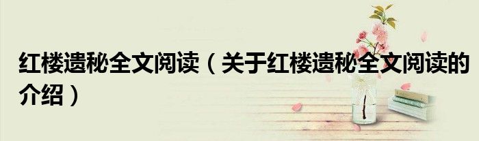 红楼遗秘全文阅读(关于红楼遗秘全文阅读的介绍)