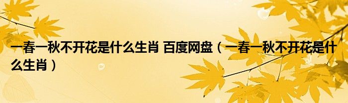 一春一秋不开花是什么生肖 百度网盘,一春一秋不开花是什么生肖这个很多人还不知道,小飞来为大家解答以上的问题。现在让我们一起来看看吧!