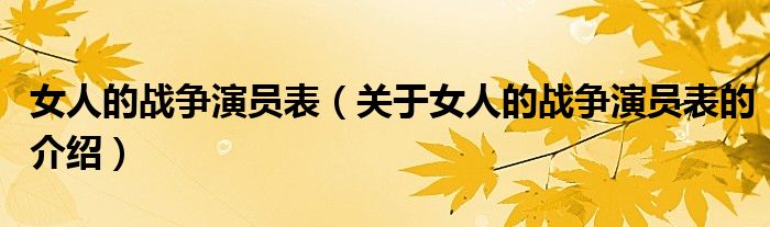 大家好,小都来为大家解答以上的问题。女人的战争演员表,关于女人的战争演员表的介绍很多人还不知道,现在让我们一起来看看吧!