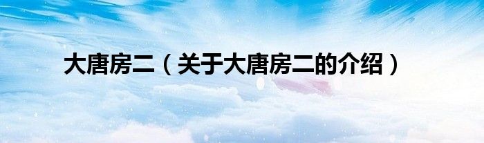 大家好,小都来为大家解答以上的问题。大唐房二,关于大唐房二的介绍很多人还不知道,现在让我们一起来看看吧!