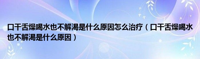 口干舌燥喝水也不解渴是什么原因怎么治疗,口干舌燥喝水也不解渴是什么原因这个很多人还不知道,小飞来为大家解答以上的问题。现在让我们一起来看看吧!