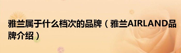 大家好,小源来为大家解答以上问题。雅兰属于什么档次的品牌,雅兰AIRLAND品牌介绍很多人还不知道,现在让我们一起来看看吧!