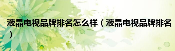 大家好,小飞来为大家解答以上问题,液晶电视品牌排名怎么样,液晶电视品牌排名很多人还不知道,现在让我们一起来看看吧!