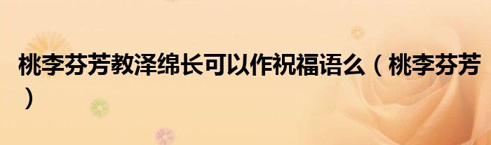 关于桃李芬芳教泽绵长可以作祝福语么,桃李芬芳这个很多人还不知道,今天菲菲来为大家解答以上的问题,现在让我们一起来看看吧!