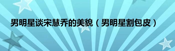 男明星谈宋慧乔的美貌,男明星割包皮这个很多人还不知道,小飞来为大家解答以上的问题。现在让我们一起来看看吧!