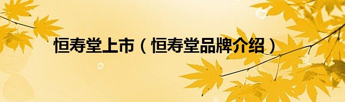大家好,小源来为大家解答以上问题。恒寿堂上市,恒寿堂品牌介绍很多人还不知道,现在让我们一起来看看吧!