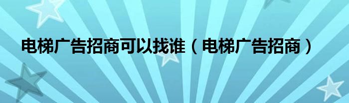 大家好,小飞来为大家解答以上的问题。电梯广告招商可以找谁,电梯广告招商这个很多人还不知道,现在让我们一起来看看吧!