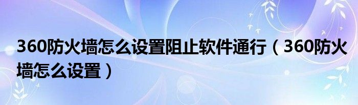 大家好,小飞来为大家解答以上问题,360防火墙怎么设置阻止软件通行,360防火墙怎么设置很多人还不知道,现在让我们一起来看看吧!