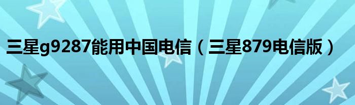 大家好,小飞来为大家解答以上问题,三星g9287能用中国电信,三星879电信版很多人还不知道,现在让我们一起来看看吧!