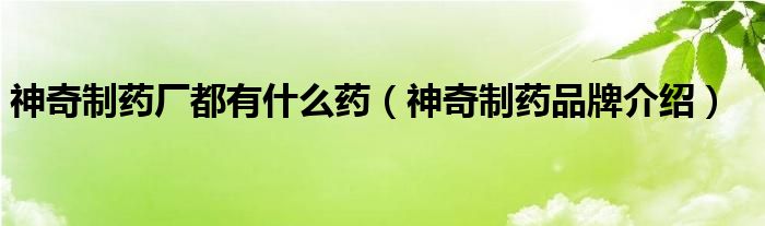 神奇制药厂都有什么药(神奇制药品牌介绍)