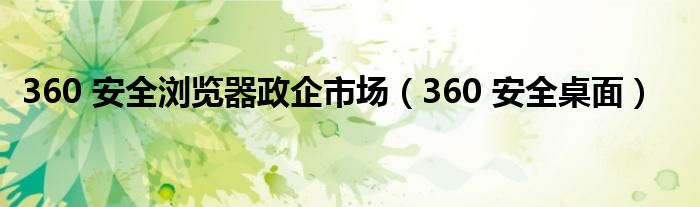 大家好,小飞来为大家解答以上问题,360 安全浏览器政企市场,360 安全桌面很多人还不知道,现在让我们一起来看看吧!
