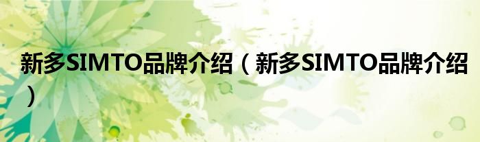 大家好,小源来为大家解答以上问题。新多SIMTO品牌介绍,新多SIMTO品牌介绍很多人还不知道,现在让我们一起来看看吧!