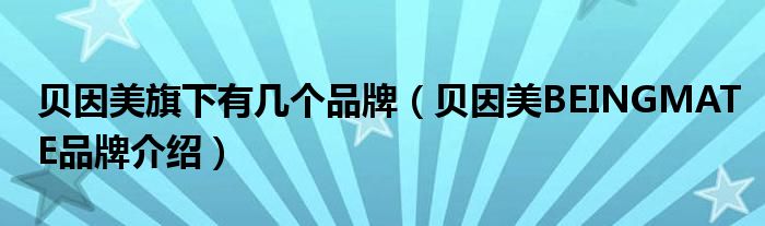 大家好,小源来为大家解答以上问题。贝因美旗下有几个品牌,贝因美BEINGMATE品牌介绍很多人还不知道,现在让我们一起来看看吧!