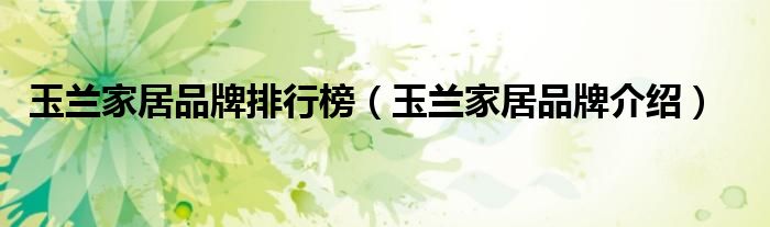 大家好,小源来为大家解答以上问题。玉兰家居品牌排行榜,玉兰家居品牌介绍很多人还不知道,现在让我们一起来看看吧!