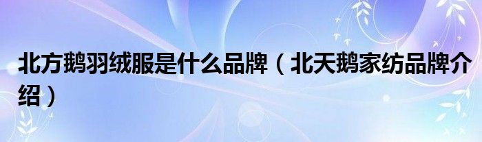 大家好,小源来为大家解答以上问题。北方鹅羽绒服是什么品牌,北天鹅家纺品牌介绍很多人还不知道,现在让我们一起来看看吧!