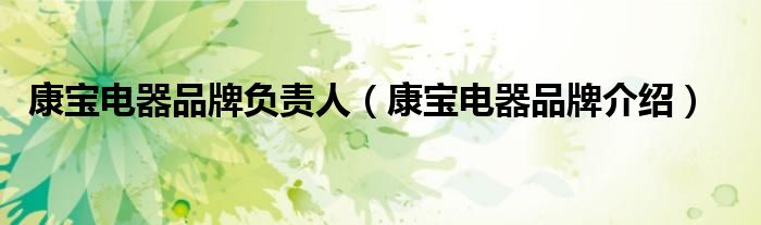 大家好,小源来为大家解答以上问题。康宝电器品牌负责人,康宝电器品牌介绍很多人还不知道,现在让我们一起来看看吧!