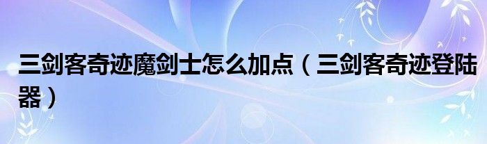 三剑客奇迹魔剑士怎么加点,三剑客奇迹登陆器这个很多人还不知道,小飞来为大家解答以上的问题。现在让我们一起来看看吧!